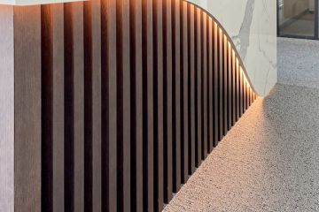 Další krásná realizace je za námi. Tentokrát se jednalo o atypický recepční pult, který tvoří dřevěné lamely, gresový obklad a LED osvětlení, podtrhující jeho výjimečnost. Na výrobu byl použitý obklad v designu mramoru ze série I Classici di Rex od předního italského výrobce Florim. Všechny části pultu byly nařezané z jednoho kusu obkladu formátu 160x320 cm. To znamená, že na jeho povrchu nenajdete žádné spáry.