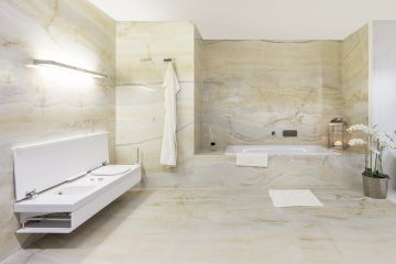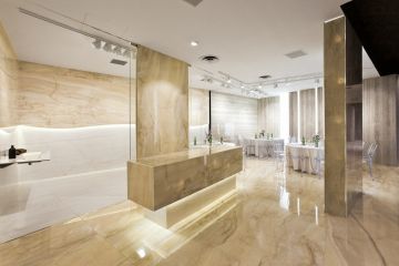Keramika samozřejmě má odlišné vlastnosti, které mohou být klíčové. Jedna, která stojí za zmínku, je částečná světelná prostupnost, která pravý onyx při dostatečné osvícení slunečními paprsky rozsvítí do ruda. Ano, toto velkoformátová keramika opravdu neumí.