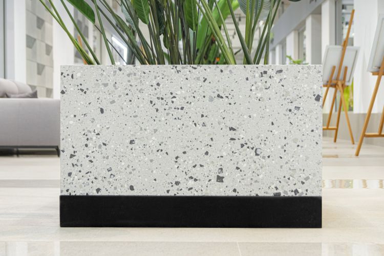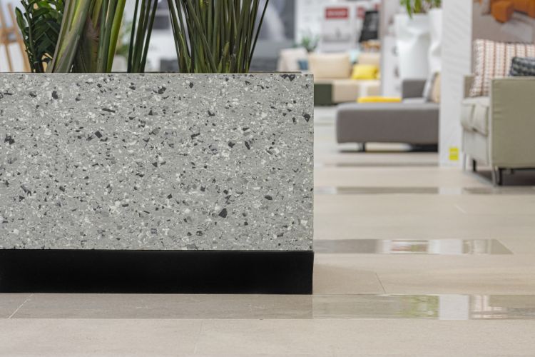 V prostorách New Living Center v Bratislavě jsou k vidění tyto vzorové květináče, které vyrobil TechnoArt z materiálu ze série Venice Villa od italského výrobce FMG. Květináče jsme doplnili odnímatelnou spodní lištou, která zakrývá podstavec, a dosáhli jsme tak ještě elegantnějšího vzhledu tohoto produktu. Tmavá lišta je vyrobena ze stejného materiálu jako květináč, tedy ze slinuté (gresové) dlažby.