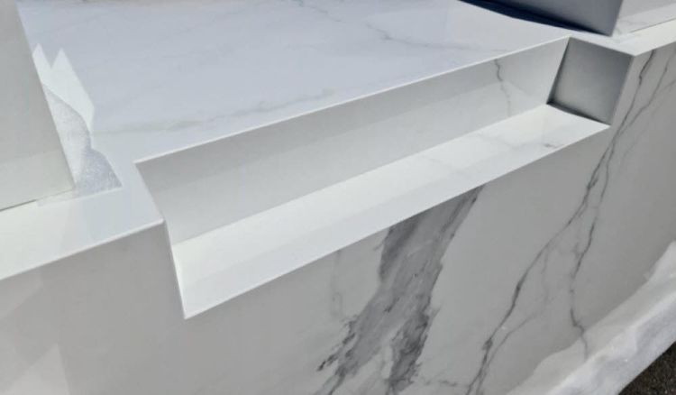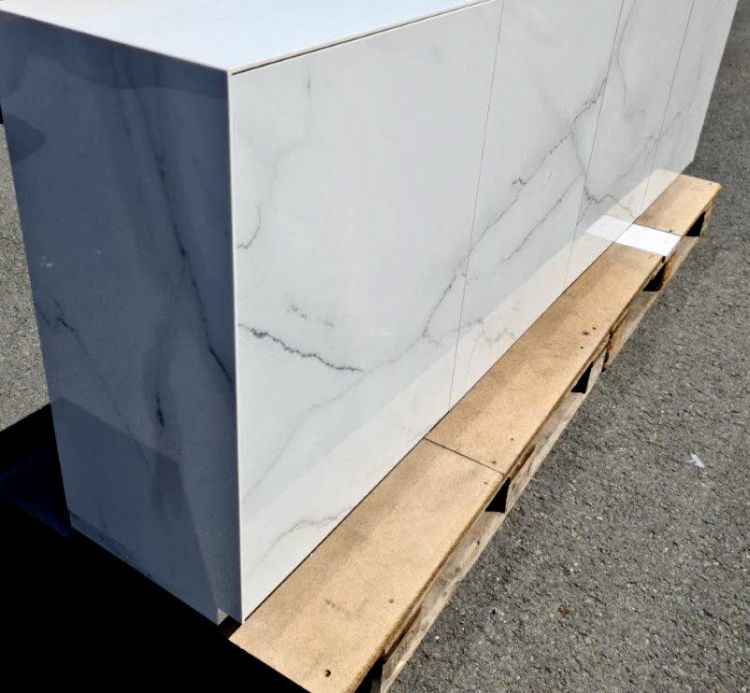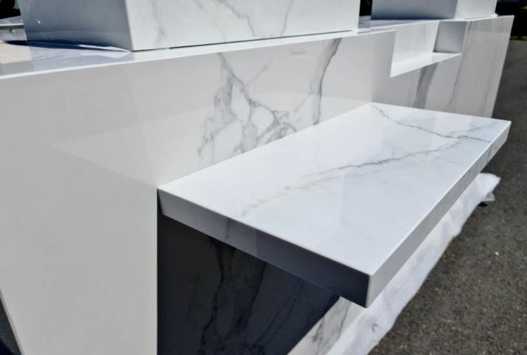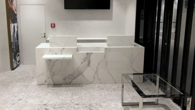 Pro butik Michael Kors na Letišti Václava Havla v Praze jsme vyráběli atypický prodejní pult z bílého mramoru s navazující kresbou. Jedná se o dřevěný korpus, který je následně celoplošně oblepen slinutou keramickou dlažbou v síle střepu 6 mm.