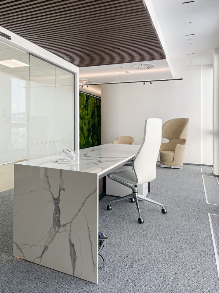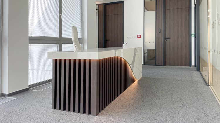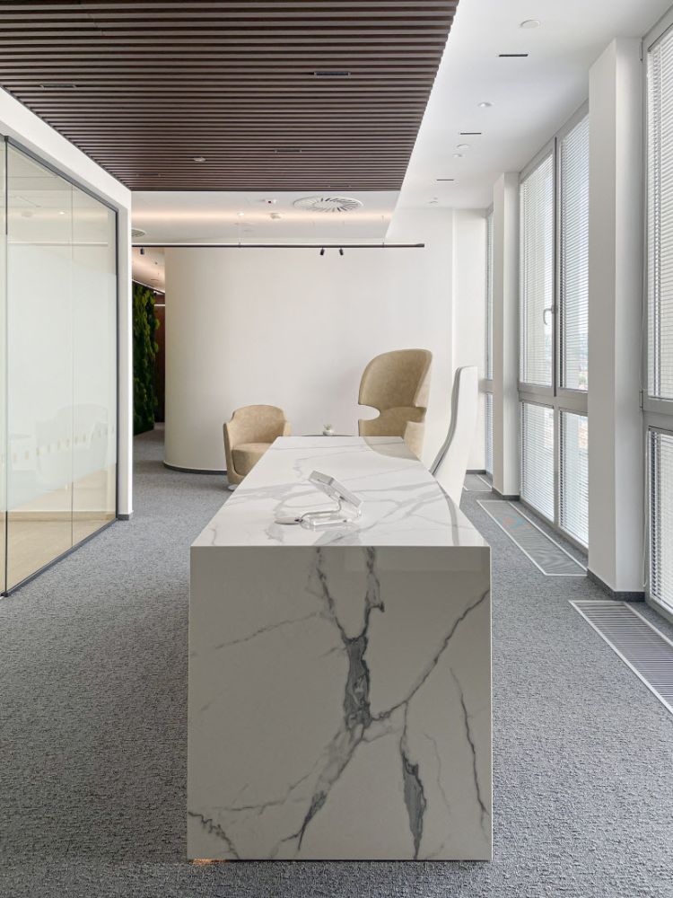 Recepční pult z obkladu v designu mramoru - Eurovea Bratislava
