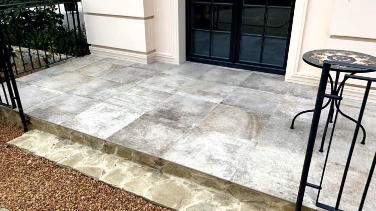 Pro soukromého investora v Plzni jsme dodali keramickou dlažbu La Roche od italského výrobce Rex, v síle střeu 2 cm, která byla použitá na venkovní terasu. Terasové tvarovky vyráběl TechnoArt. Dlaždice byly naformátovány na požadovaný rozměr a zaleštěny hrany.