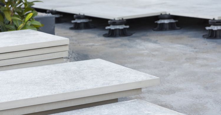V rámci projektu Grand Koliba jsme kromě dodávek obkladů, dlažeb a koupelnového vybavení do jednotlivých bytu a společných prostor, dodávali i venkovní dlažbu pro terasy. V tomto konkrétním případě jsme zvolili dlažbu série La Roche italského výrobce Rex (Florim) ve formátu 40x120 cm v odstínu Grey a síle střepu 2 cm. Pokládka byla realizována pomocí stavitelných terčů od českého výrobce Akcept.