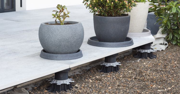 Terasa s dlažbou La Roche di Rex na stavitelných terčích - Grand Koliba