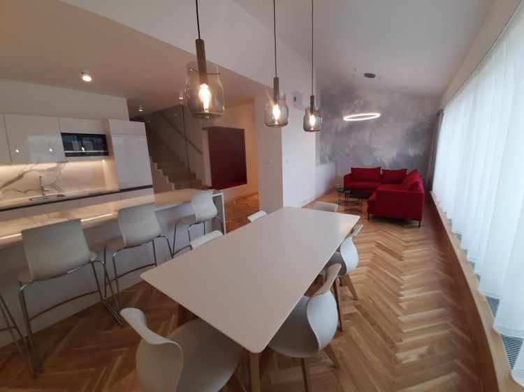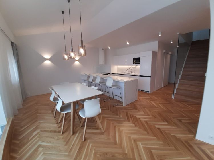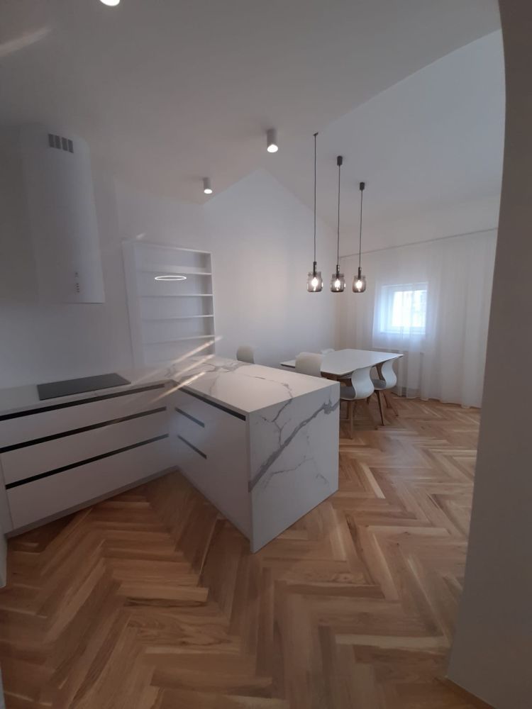 V rámci realizace rezidence Jaselská jsme vyrobili a dodali 16 kuchyňských desek různých tvarů a velikostí, včetně obklady na stěny za pracovní desky. Na pracovní desku byl použit materiál Florim Stone marble statuario a jako obklad materiál I Classici statutario. Vše v lesklém provedení.