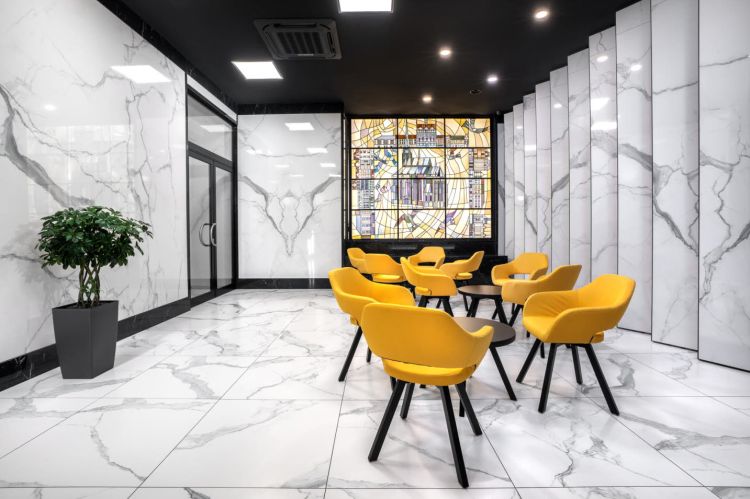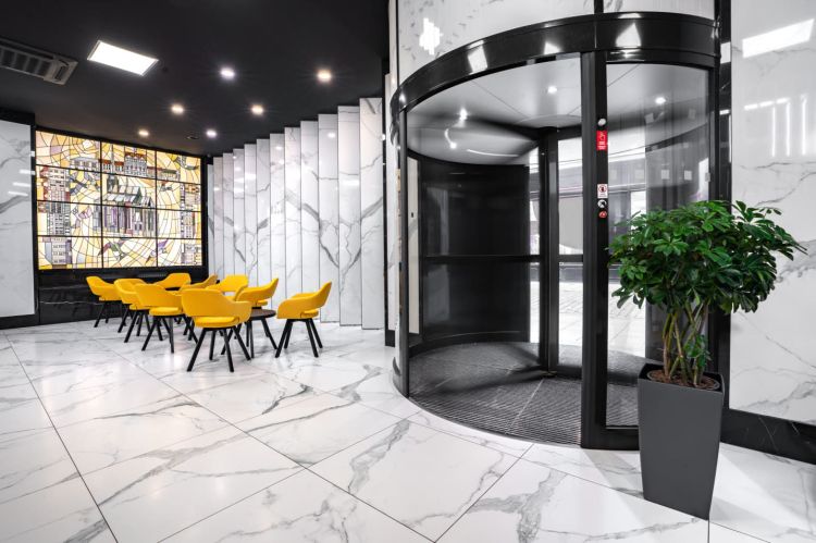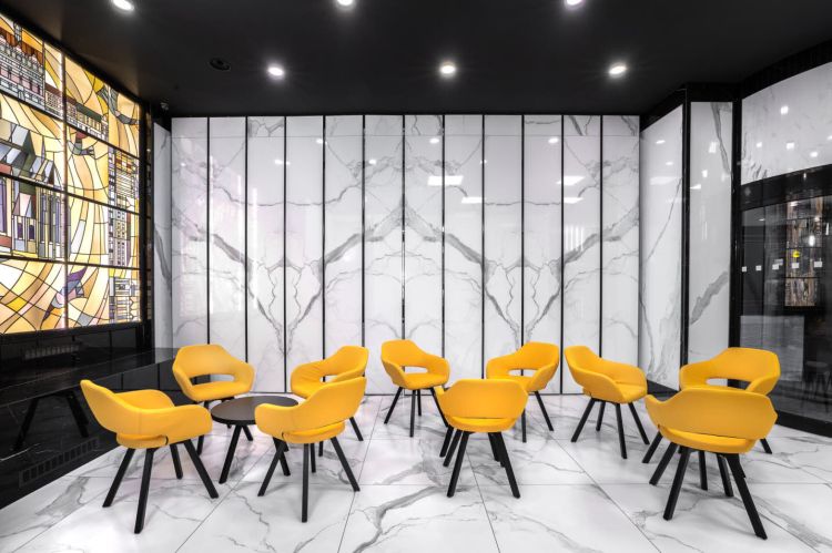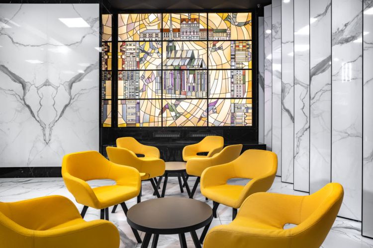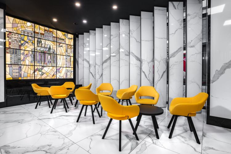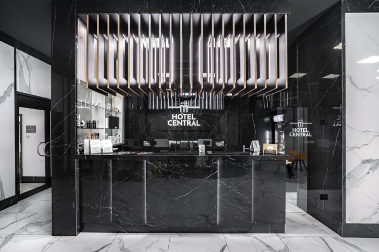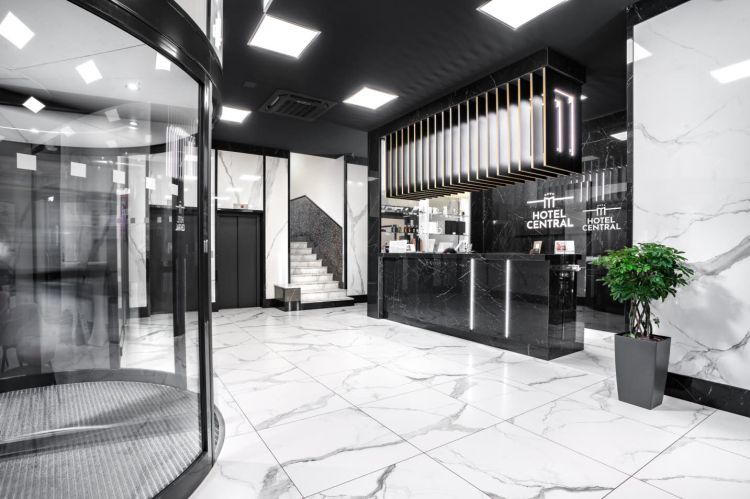 Kompletní rekonstrukce vstupní haly a chodeb tohoto hotelu podle návrhu plzeňských architektů Václava Ulče a Tomáše Fialy. Naše firma se podílela na dodávce obkladů, dlažeb i samotnou pokládkou. Byly zde použity výjimečné velkoformátové materiály jednoho z nejprestižnějších italských výrobců skupiny Florim Ceramiche (Rex). Na realizaci se podílel i náš výrobní závod TechnoArt, který zde vyráběl úzké keramické lamely na obklad turniketu a loga hotelu Central.