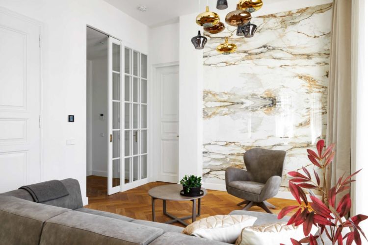 Naše středisko ProCeram Interiéry úspěšně dokončilo náročnou realizaci interiéru na klíč pro soukromého investora. Jednalo se o kompletní dodávku interiérového nábytku, bytového textilu a dekorací včetně návrhu konceptu interiéru. Použitý nábytek v interiéru je od českého výrobce Hanák, doplněný o tapety, závěsy a bytové dekorace našeho partnera z New Living Center a to společnosti A la Maison. Kompletní dodávka světel je od společnosti Profi Lighting. Výrobní závod TechnoArt se postaral o kuchyňskou desku, obložení za kuchyňskou linkou, televizní stěnou a o obklad sloupu.