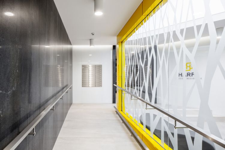 Největší český rezidenční stavitel CENTRAL GROUP v pražské Libni dokončil architektonicky unikátní bytový dům Harfa Design Residence s 249 byty, ateliéry a komerčními prostory. Naše firma dodala vybavení do vstupní recepce i bytových jednotek. Vybrané a použité byly velkoformátové obklady Lavica Black Levigato v rozměru 100x300x0,6 cm a jako dlažba byla zvolena Basalto Grigio Naturale v rozměru 60x120 cm.