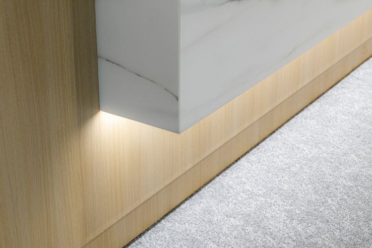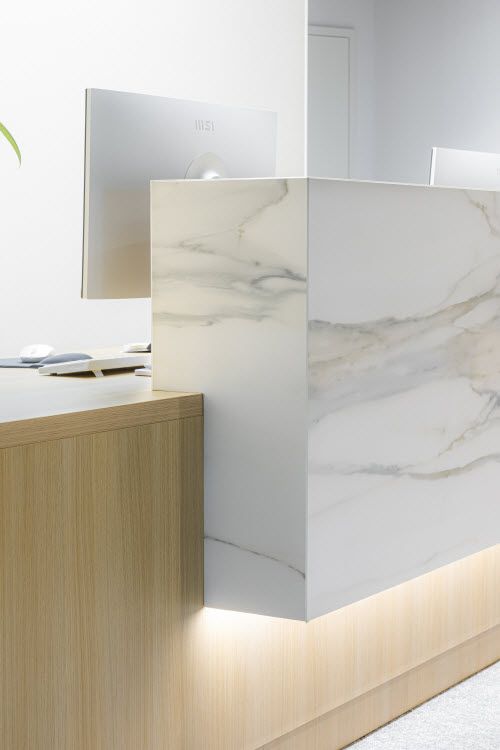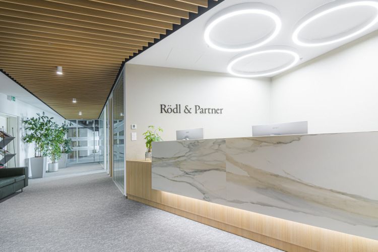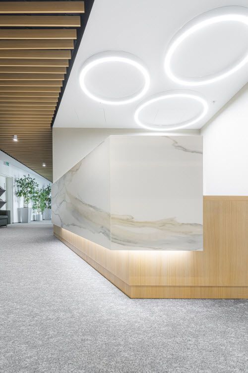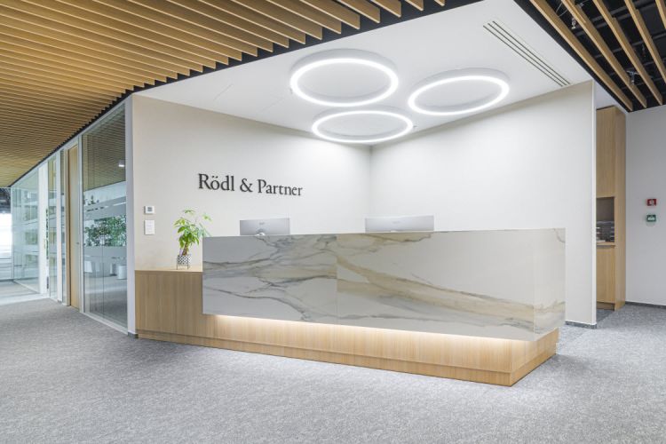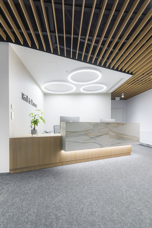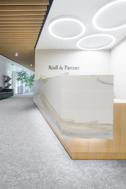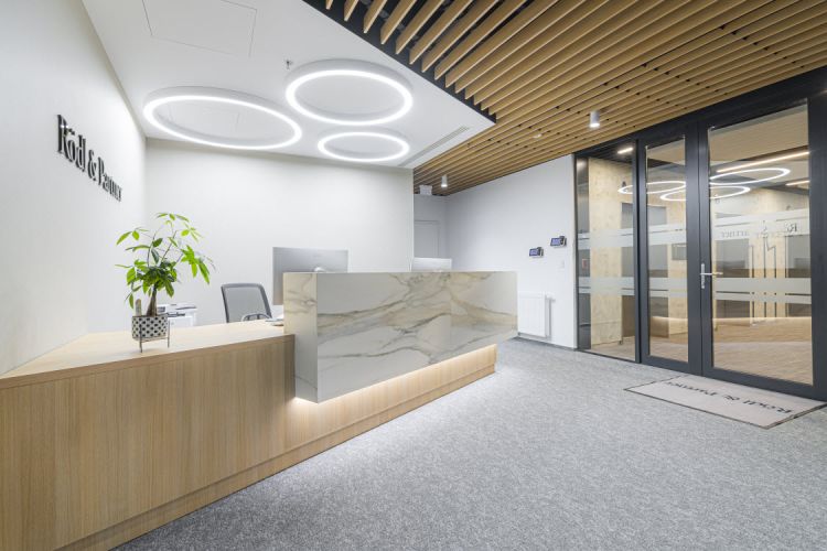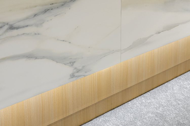 Pro právnickou firmu Rödl & Partner v Bratislavě jsme obložili recepční pult ze série I Classici di Rex od výrobce Florim. Na výrobu byl zvolen design Calacatta gold ve formátu 120x240 cm v povrchu matte, který zpracoval TechnoArt.