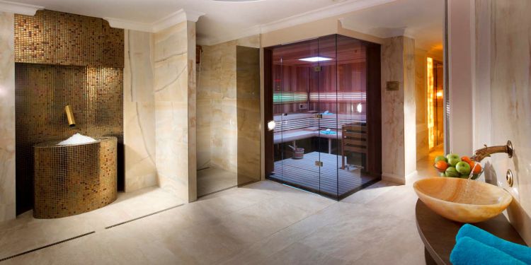 Do čtyřhvězdičkového Chateau Monty SPA Resort v Mariánských Lázních jsme dodávali obklady, dlažby a mozaiky včetně jejich montáže. Na zdech jsou vidět velkoformátové obklady ze série Onice Oro od italského výrobce Iris - FMG a to ve formátu 300x150 cm. V prostorech je vidět také série Alabastri di Rex a Ardoise. Mozaiky byly vyrobeny na zakázku v našem výrobním závodě TechnoArt.