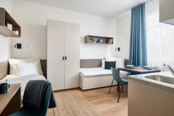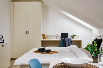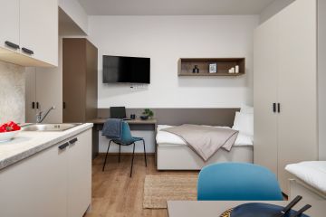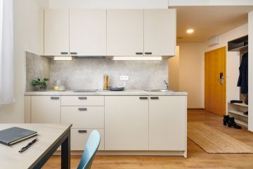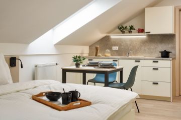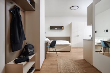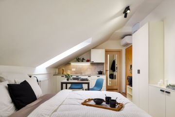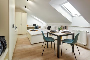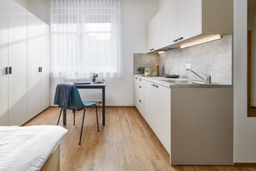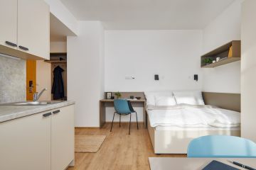 V rámci zařizování interiérů nyní dokončujeme realizaci 70 bytů v centru Prahy, které jsou určené pro nájemní bydlení. Jedná se o malometrážní byty, které jsou plně vybavené od výrobce Hanák nábytek. Objekt je vyhotoven v laminovém provedení ve dvou kombinacích barevného řešení - Magnolia, Champagne a Champagne, Mocca.
