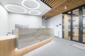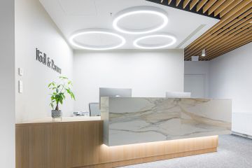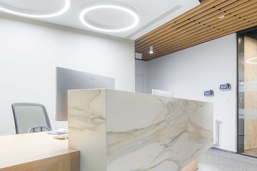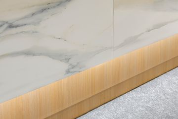 Prohlédněte si vstupní prostory právnické firmy Rödl & Partner v Bratislavě, do které jsme dodávali materiál ze série I Classici di Rex od italského výrobce Florim na obložení recepčního pultu. Keramická dlažba je v krásném matném designu Calacatta Gold a ve formátu 120 x 240 cm. Na zakázce jsme spolupracovali se společností EKOMA design a realizaci pultu zabezpečila společnost FLOW ZONE.
