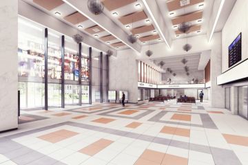 Objekt osobního nádraží v Berouně tvoří komplex tří navzájem propojených budov zahrnující odjezdovou halu, administrativní budovu a provozní prostory. V odjezdové hale dochází k výměně podlah od výrobce RAKO a pro obložení stěn haly dodáváme velkoformátové dlaždice o rozměru 80x240cm od výrobce Florim. Rekonstrukce zahrnuje i novou fasádu z obkladových pásků z naší výroby TechnoArt.