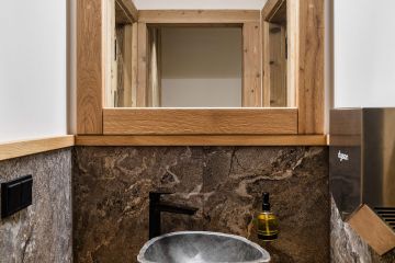 Aldrov Resort vychází z klasické krkonošské architektury. Cílem bylo vytvořit tradiční, ale přesto moderní a komfortní místo obce Vítkovice. Pro výběr předlohy dlažeb bylo třeba hledat materiály, které se vyskytují v okolní přírodě. Do hlavní budovy (recepce, restaurace, wellness) byla vybrána dlažba od výrobce Florim – porphyry, doplněné o schodové hrany z naší výroby. Na venkovní plochy jsme vybrali dlažbu od výrobce RAKO Quarzit v síle střepu 2 cm, která byla položena na terče.